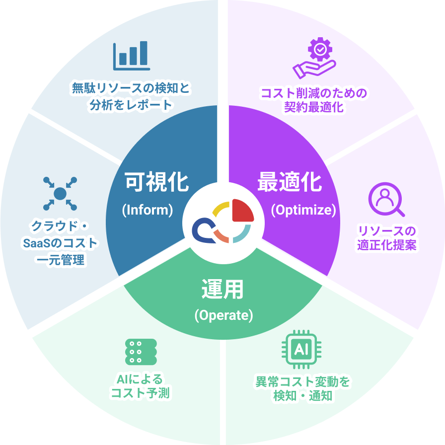 クラウドコストの一元管理、余剰リソース削除のご提案、イレギュラー発生時の通知等、